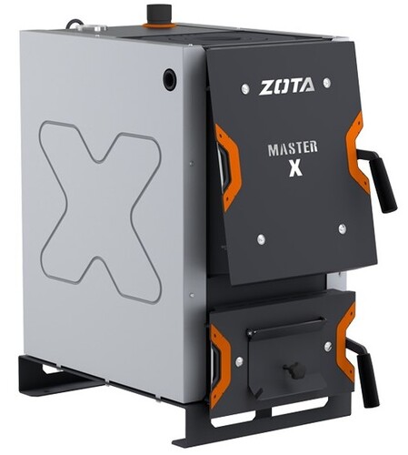 Отопительный котел серии "Master-X" предназначены для теплоснабжения индивидуальных жилых домов и зданий коммунально – бытового назначения, оборудованных системой водяного отопления с принудительной или естественной циркуляцией. Котлы работают на твердом топливе: угле и дровах. Данная модель состоит из корпуса, топки, чугунной плиты, газоход и патрубка дымохода возможна установка горизонтального или вертикального патрубка дымохода.