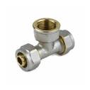 Тройник переходной никелированный 16х1/2"х16 обжимной с внутренней резьбой для металлопластиковой трубы