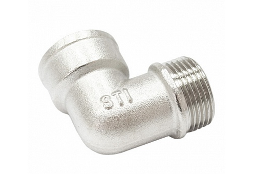 Угольник латунный никелированный с внутренней/наружной резьбой Ду 20 (3/4") STI используется для устройства внутренних систем отопления, холодного и горячего водоснабжения.